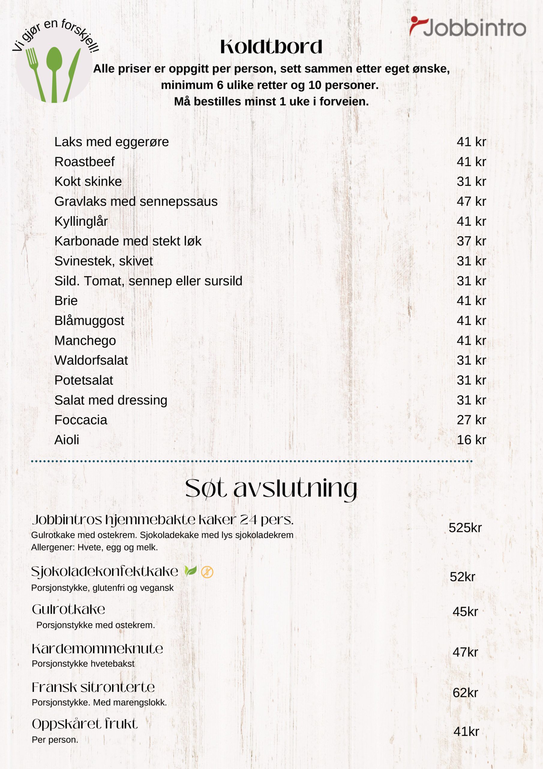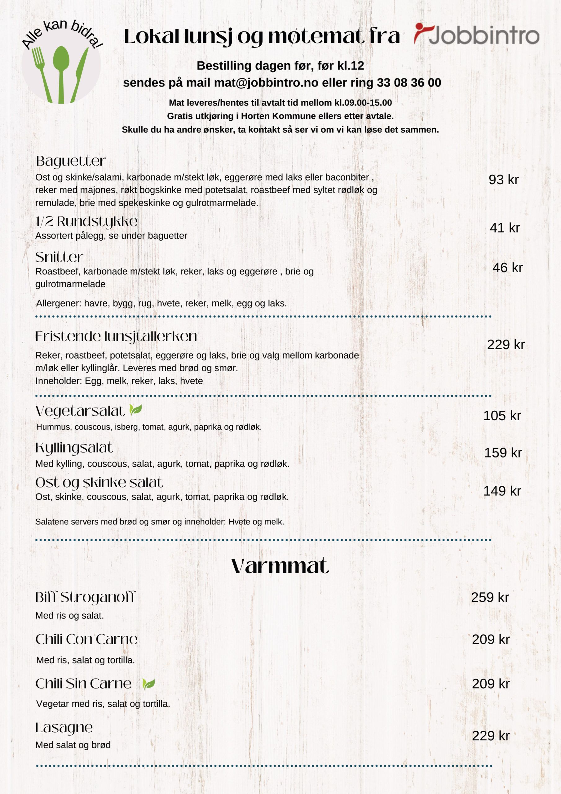 Bestill møtemat eller inngå egen lunsjavtale på mat@jobbintro.no eller på telefon 489 56 549.